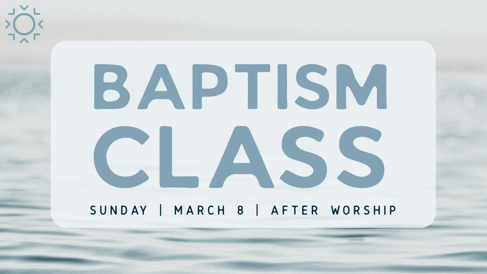 Baptism Class Sunday, March 8, 2026 11:30 AM 12:30 PM Google Calendar ICS If you are interested in learning more about baptism or being baptized, join us after worship to learn more! Lunch and childcare will be provided. RSVP with Curt.