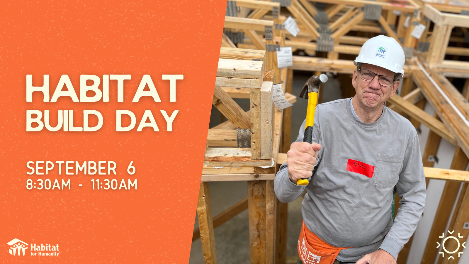 Join us for a morning of building together with Habitat for Humanity. Email Elizabeth for more info or to sign up.